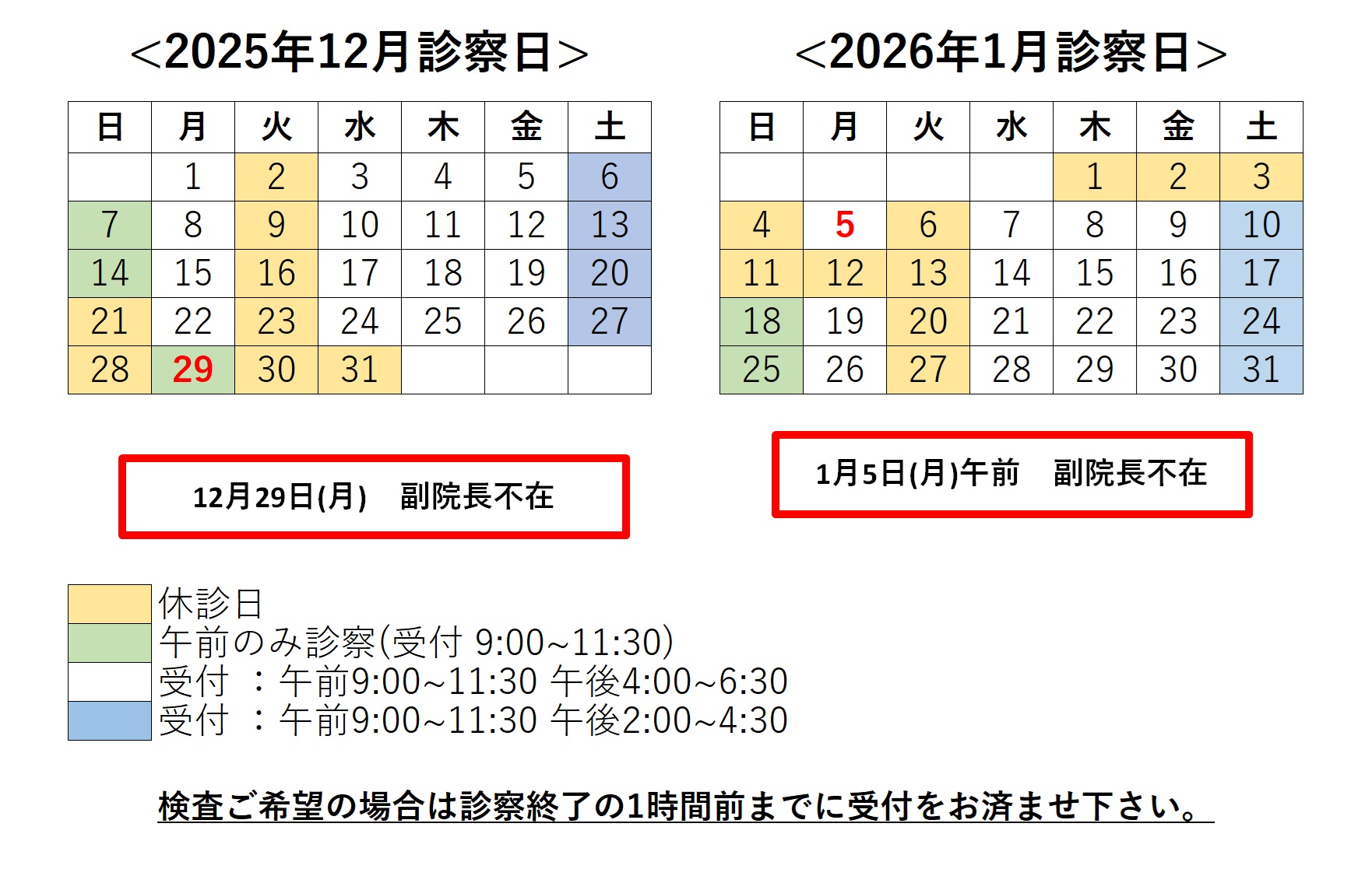 ・診療日時が変更となる場合があります。上記診療カレンダーをご確認の上、ご来院ください
