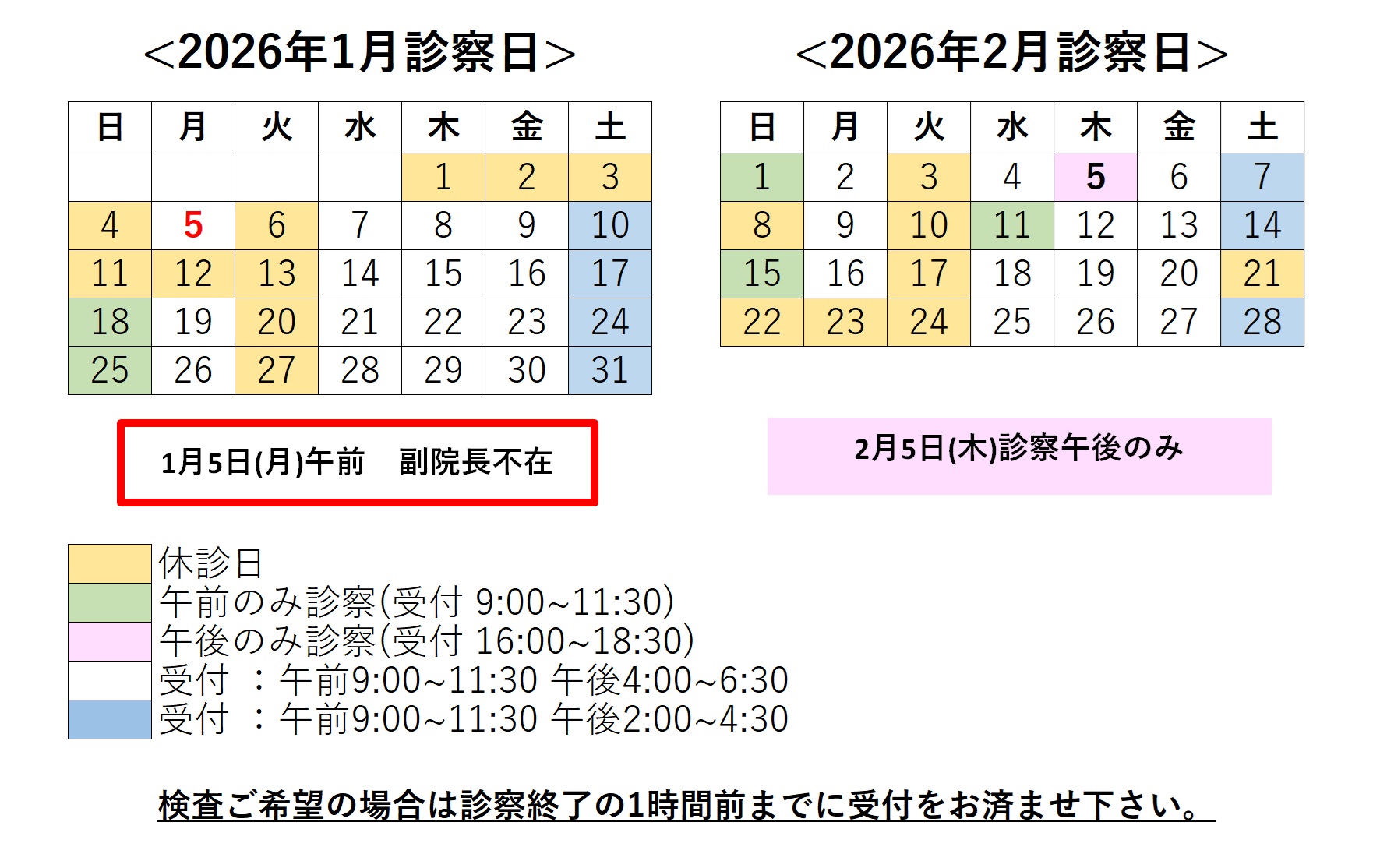 ・診療日時が変更となる場合があります。上記診療カレンダーをご確認の上、ご来院ください